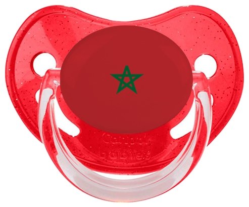 Sucette personnalisée pour bébé Drapeau Maroc à embout Physiologique en silicone de la marque Canpol Babies avec impression en en Couleurs de la Collection Pays / Équipes .La silicone se reconnaît par sa couleur transparente. C'est une matière souple, douce, sans goût ni odeur et offre à bébé une succion plus facile grâce à sa souplesse.