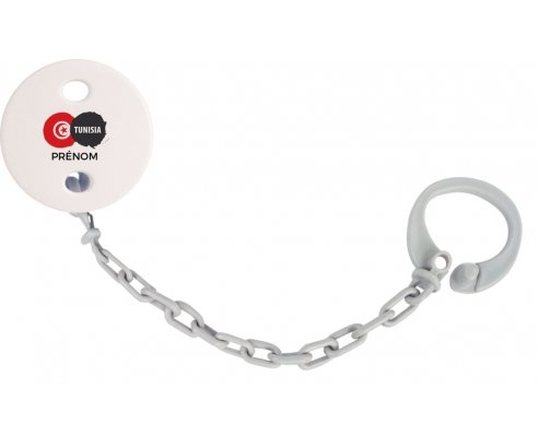 Offrez à bébé une attache-tétine unique aux couleurs du Drapeau Tunisia. Pratique et sécurisée, elle se fixe facilement grâce à sa pince en plastique sans laisser de trace. Personnalisable avec le prénom de votre enfant, cet accessoire coloré s’adapte à toutes les tétines avec anneau. Idéal pour garder la tétine à portée de main tout en apportant une touche d’originalité inspirée de la Tunisie.