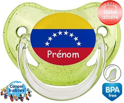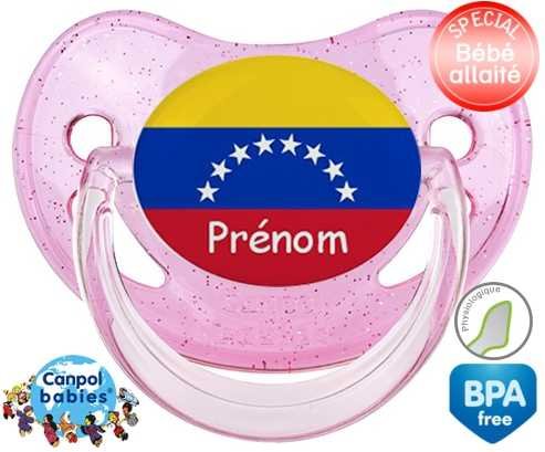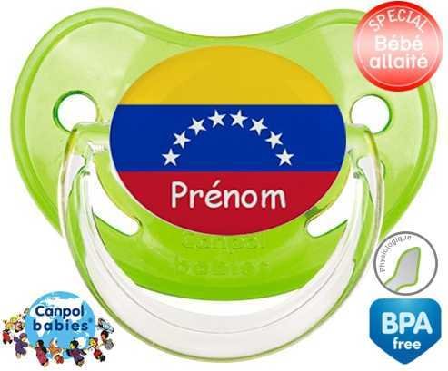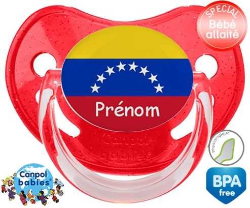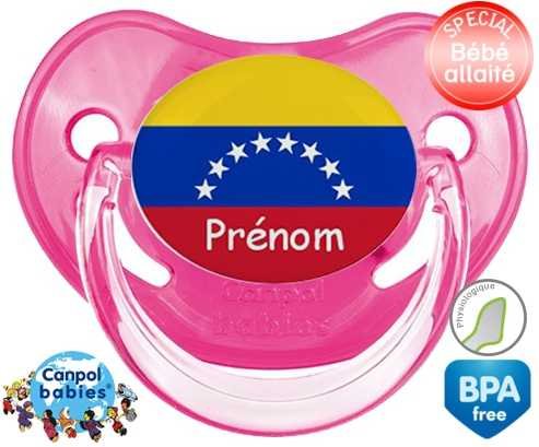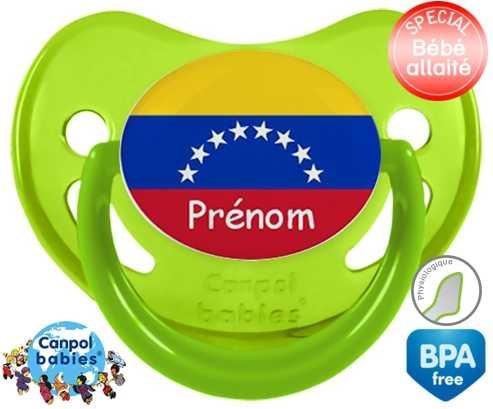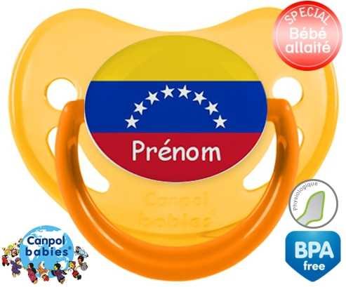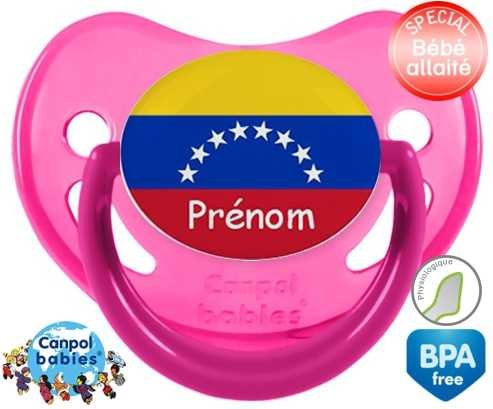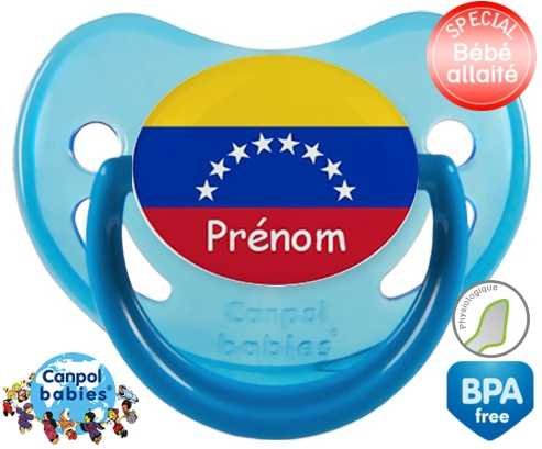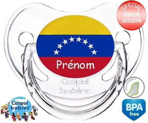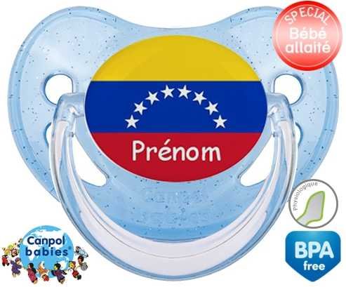 Sucette personnalisée pour bébé Drapeau vénézuéla + prénom à embout Physiologique en silicone de la marque Canpol Babies avec impression en en Couleurs de la collection Prénom personnalisé.La silicone se reconnaît par sa couleur transparente. C'est une matière souple, douce, sans goût ni odeur et offre à bébé une succion plus facile grâce à sa souplesse.