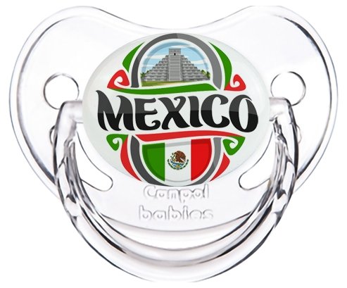 Sucette personnalisée pour bébé Flag Mexico à embout Physiologique en silicone de la marque Canpol Babies avec impression en en Couleurs de la Collection Pays / Équipes .La silicone se reconnaît par sa couleur transparente. C'est une matière souple, douce, sans goût ni odeur et offre à bébé une succion plus facile grâce à sa souplesse.