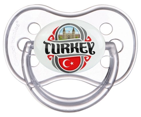 Sucette personnalisée pour bébé Flag Turkey à embout Anatomique en silicone de la marque Canpol Babies avec impression en en Couleurs de la Collection Pays / Équipes .La silicone se reconnaît par sa couleur transparente. C'est une matière souple, douce, sans goût ni odeur et offre à bébé une succion plus facile grâce à sa souplesse.