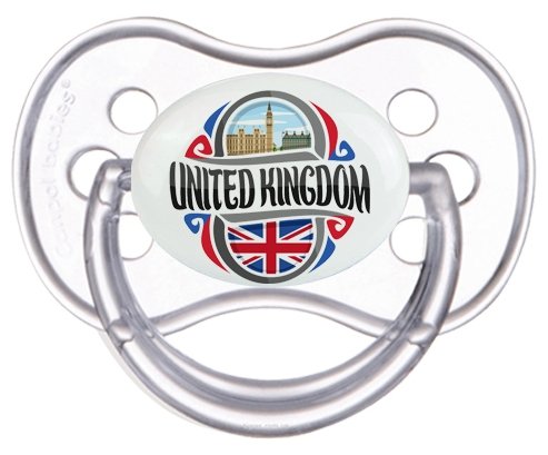 Tétine personnalisée pour bébé Flag United Kingdom à embout Anatomique en silicone de la marque Canpol Babies avec impression en en Couleurs de la Collection Pays / Équipes .La silicone se reconnaît par sa couleur transparente. C'est une matière souple, douce, sans goût ni odeur et offre à bébé une succion plus facile grâce à sa souplesse.