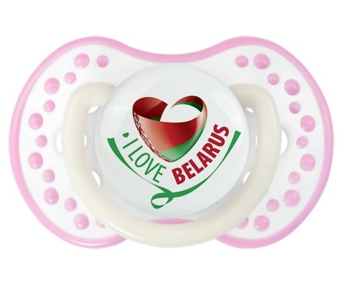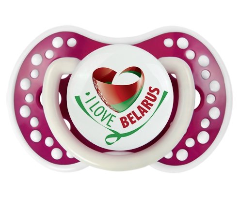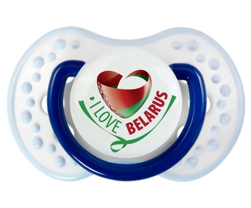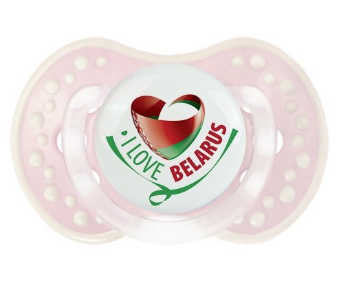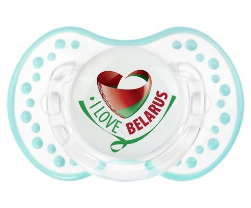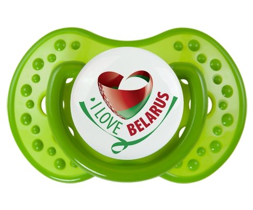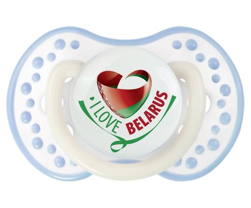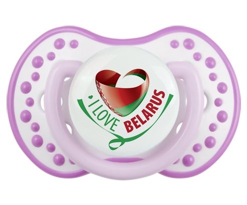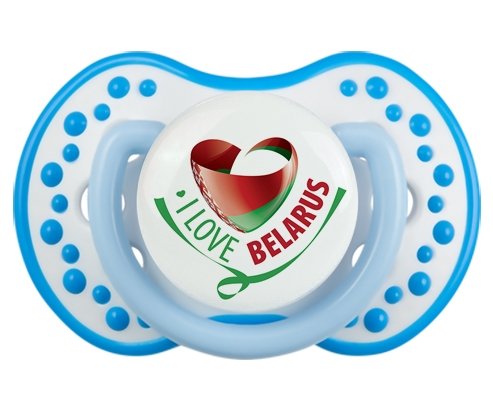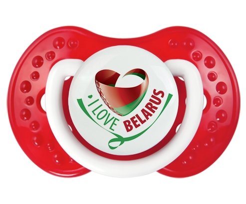 Tétine personnalisée pour bébé I Love Belarus à embout LOVI Dynamic en silicone de la marque Canpol Babies avec impression en en Couleurs de la Collection Pays / Équipes .La silicone se reconnaît par sa couleur transparente. C'est une matière souple, douce, sans goût ni odeur et offre à bébé une succion plus facile grâce à sa souplesse.