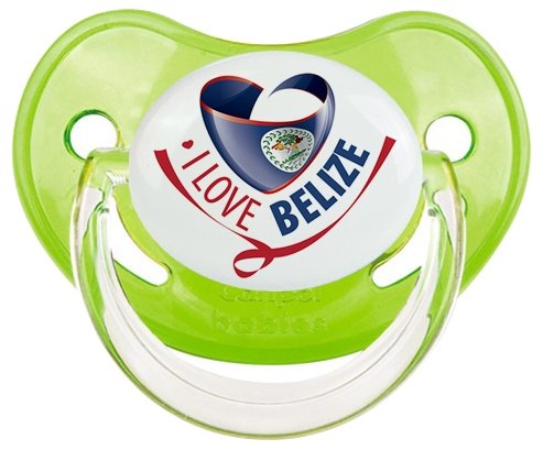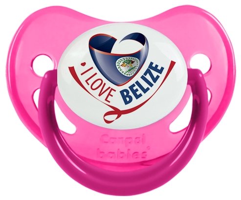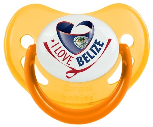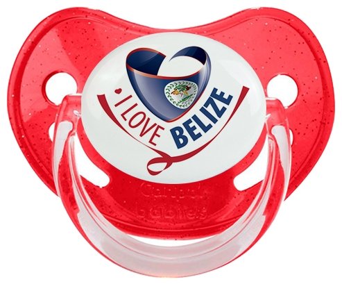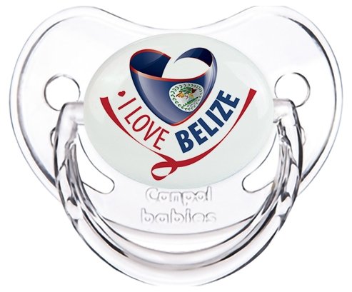 Tétine personnalisée pour bébé I Love Belize à embout Physiologique en silicone de la marque Canpol Babies avec impression en en Couleurs de la Collection Pays / Équipes .La silicone se reconnaît par sa couleur transparente. C'est une matière souple, douce, sans goût ni odeur et offre à bébé une succion plus facile grâce à sa souplesse.
