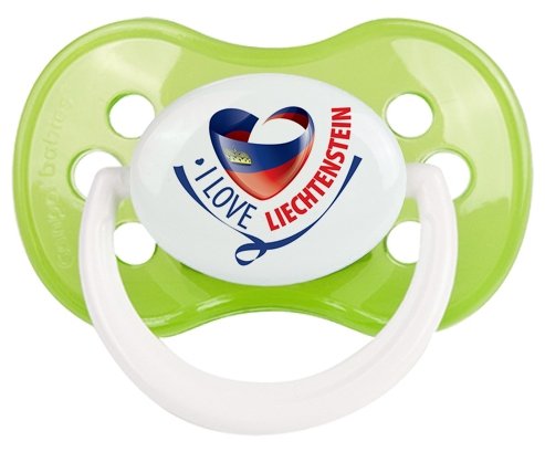 Sucette personnalisée pour bébé I Love Liechtenstein maps à embout Anatomique en silicone de la marque Canpol Babies avec impression en en Couleurs de la Collection Pays / Équipes .La silicone se reconnaît par sa couleur transparente. C'est une matière souple, douce, sans goût ni odeur et offre à bébé une succion plus facile grâce à sa souplesse.