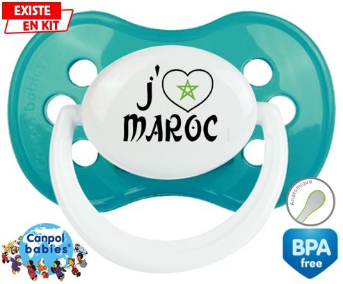 Sucette personnalisée pour bébé J'aime Maroc : Sucette Anatomique en silicone de la marque Canpol Babies avec impression en Couleur.