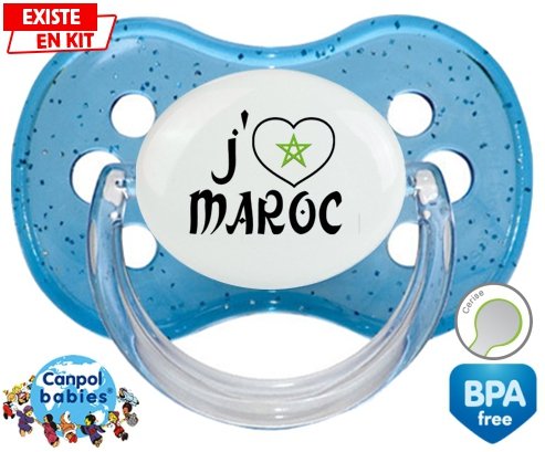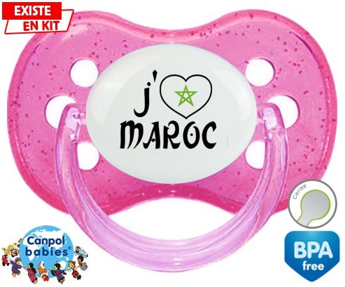Tetine personnalisee pour bébé J'aime Maroc à embout Cerise en silicone de la marque Canpol Babies avec impression en en Couleurs de la collection Pays / Région.La silicone se reconnaît par sa couleur transparente. C'est une matière souple, douce, sans goût ni odeur et offre à bébé une succion plus facile grâce à sa souplesse.