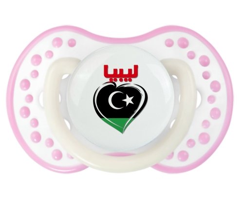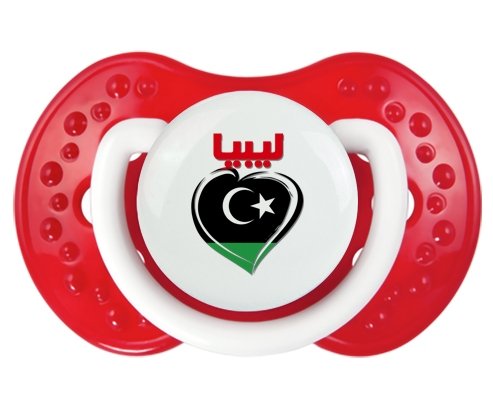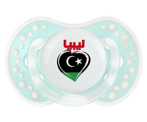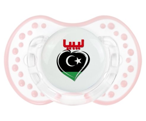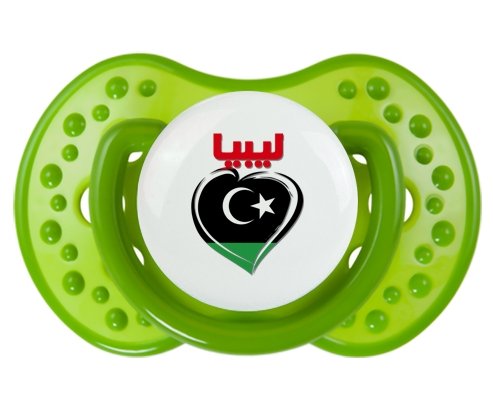 Sucette personnalisée pour bébé Libye en arabe + cœur à embout LOVI Dynamic en silicone de la marque Canpol Babies avec impression en en Couleurs de la Collection Pays / Équipes .La silicone se reconnaît par sa couleur transparente. C'est une matière souple, douce, sans goût ni odeur et offre à bébé une succion plus facile grâce à sa souplesse.