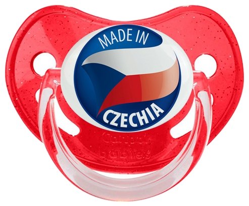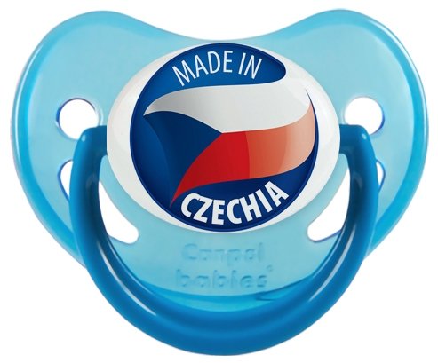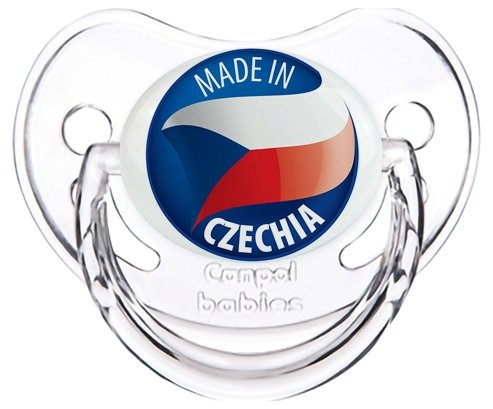 Tétine personnalisée pour bébé Made in CZECHIA à embout Physiologique en silicone de la marque Canpol Babies avec impression en en Couleurs de la Collection Pays / Équipes .La silicone se reconnaît par sa couleur transparente. C'est une matière souple, douce, sans goût ni odeur et offre à bébé une succion plus facile grâce à sa souplesse.