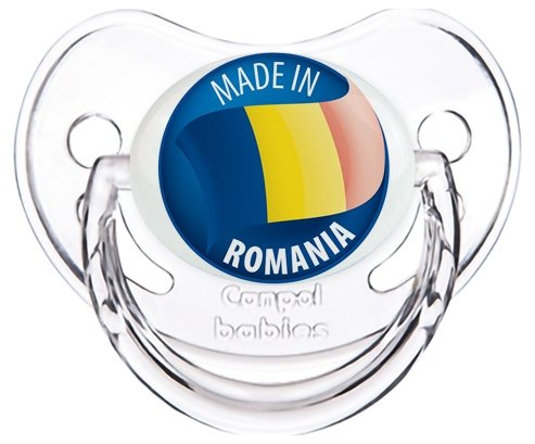 Tétine personnalisée pour bébé Made in ROMANIA à embout Physiologique en silicone de la marque Canpol Babies avec impression en en Couleurs de la Collection Pays / Équipes .La silicone se reconnaît par sa couleur transparente. C'est une matière souple, douce, sans goût ni odeur et offre à bébé une succion plus facile grâce à sa souplesse.