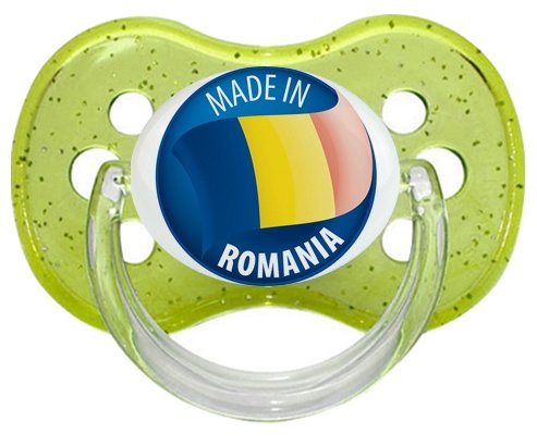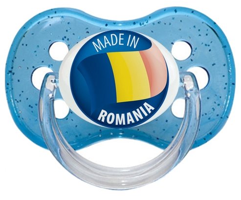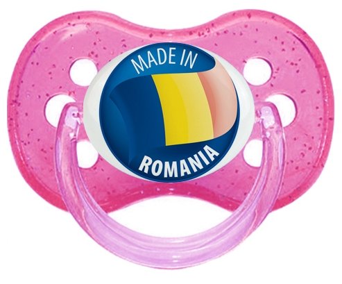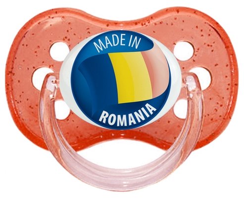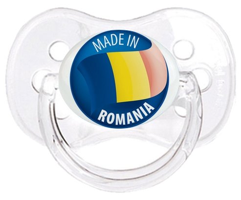 Sucette personnalisée pour bébé Made in ROMANIA à embout Cerise en silicone de la marque Canpol Babies avec impression en en Couleurs de la Collection Pays / Équipes .La silicone se reconnaît par sa couleur transparente. C'est une matière souple, douce, sans goût ni odeur et offre à bébé une succion plus facile grâce à sa souplesse.