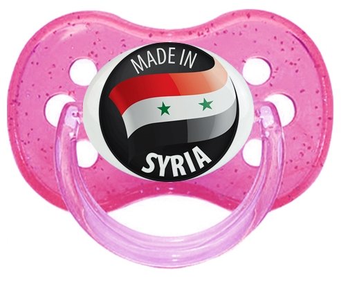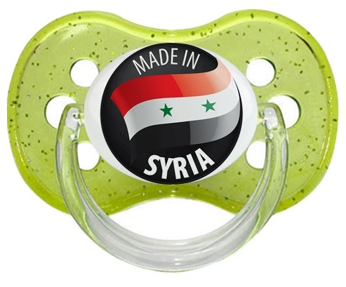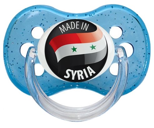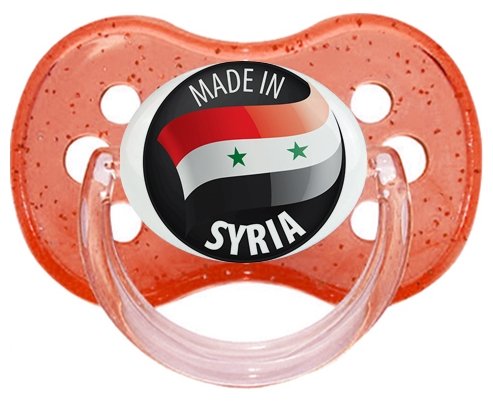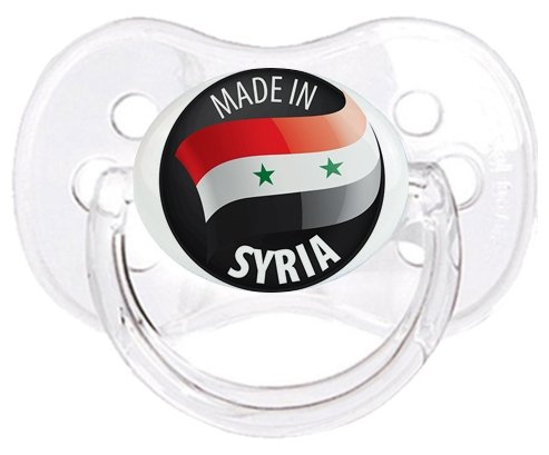 Sucette personnalisée pour bébé Made in SYRIA à embout Cerise en silicone de la marque Canpol Babies avec impression en en Couleurs de la Collection Pays / Équipes .La silicone se reconnaît par sa couleur transparente. C'est une matière souple, douce, sans goût ni odeur et offre à bébé une succion plus facile grâce à sa souplesse.