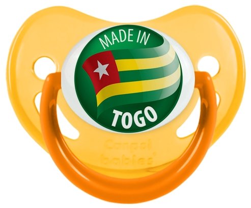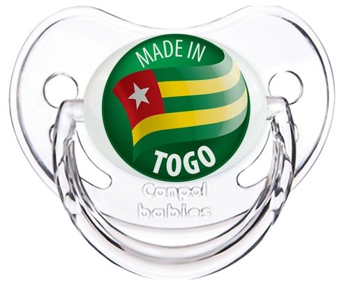 Sucette personnalisée pour bébé Made in TOGO à embout Physiologique en silicone de la marque Canpol Babies avec impression en en Couleurs de la Collection Pays / Équipes .La silicone se reconnaît par sa couleur transparente. C'est une matière souple, douce, sans goût ni odeur et offre à bébé une succion plus facile grâce à sa souplesse.