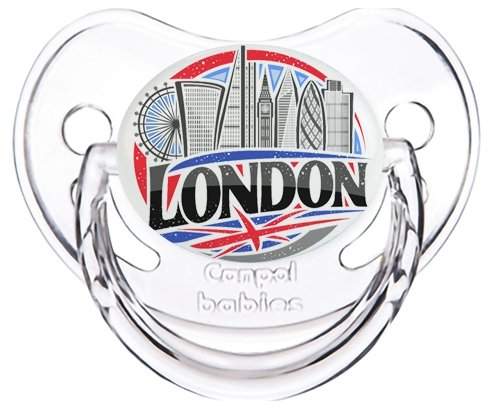 Sucette personnalisée pour bébé Ville de London à embout Physiologique en silicone de la marque Canpol Babies avec impression en en Couleurs de la Collection Pays / Équipes .La silicone se reconnaît par sa couleur transparente. C'est une matière souple, douce, sans goût ni odeur et offre à bébé une succion plus facile grâce à sa souplesse.