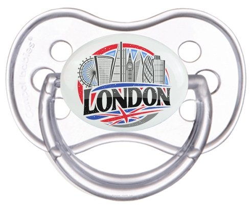 Sucette personnalisée pour bébé Ville de London à embout Anatomique en silicone de la marque Canpol Babies avec impression en en Couleurs de la Collection Pays / Équipes .La silicone se reconnaît par sa couleur transparente. C'est une matière souple, douce, sans goût ni odeur et offre à bébé une succion plus facile grâce à sa souplesse.