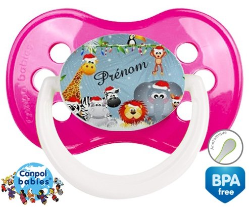 Sucette personnalisée avec le prénom pour bébé Animaux de noël + prénom : Sucette Anatomique en silicone de la marque Canpol Babies avec impression en couleur.