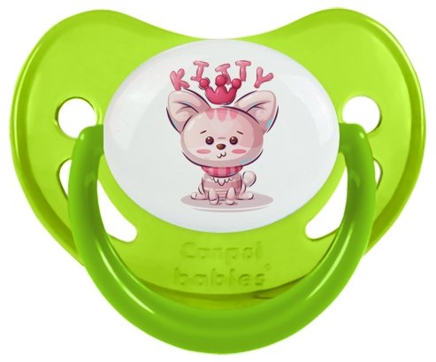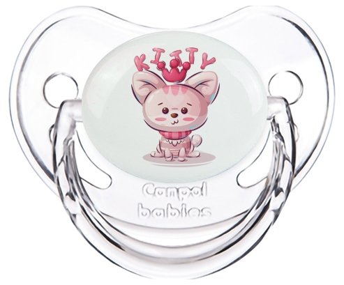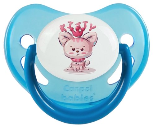 Tétine personnalisée pour bébé design : Animaux rigolos Kitty Sucette Physiologique en silicone de la marque Canpol Babies avec impression en couleur.un cadeau idéal pour vos bébés. Nos sucettes sont conçues avec l'aide de pédiatres et de dentistes pour respecter la physiologie de bébé et répondre à son réflexe naturel de succion.