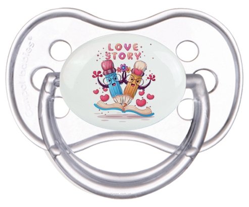 Sucette personnalisée pour bébé avec le design : Animaux rigolos Love story Sucette Anatomique en silicone de la marque Canpol Babies avec impression en couleur.un cadeau idéal pour vos bébés. Nos sucettes sont conçues avec l'aide de pédiatres et de dentistes pour respecter la physiologie de bébé et répondre à son réflexe naturel de succion.