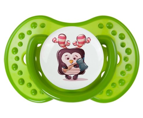 Tétine personnalisée pour bébé design : Animaux rigolos Pinguin marteau Sucette LOVI Dynamic en silicone de la marque Lovi Dynamic avec impression en couleur.un cadeau idéal pour vos bébés. Nos sucettes sont conçues avec l'aide de pédiatres et de dentistes pour respecter la physiologie de bébé et répondre à son réflexe naturel de succion.