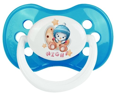 Offrez à votre bébé une sucette personnalisée à l'effigie d'un adorable pingouin dans une douce ambiance nocturne. Cette tétine en silicone, avec son embout anatomique symétrique, respecte parfaitement le confort buccal de votre enfant. Son design coloré et mixte apporte une touche ludique et rassurante, idéale pour accompagner les tout-petits au quotidien.