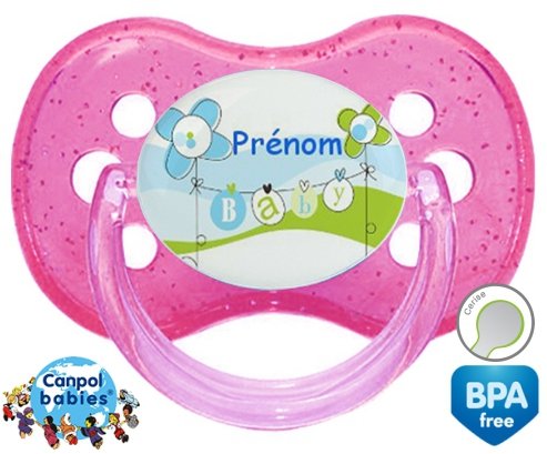 Cette sucette est personnalisé avec le prénom ou le texte de votre choix pour plus de fun, pour ne plus la perdre ou la confondre avec celle d’un autre bébé.