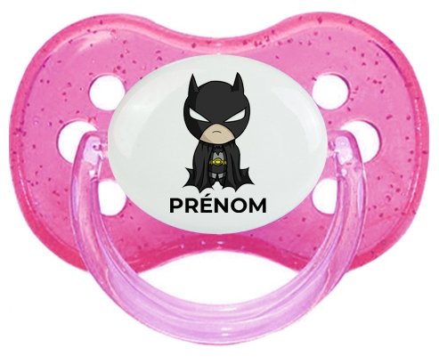 Offrez à votre bébé une tétine personnalisée unique, ornée du célèbre logo de Batman, subtilement imprimé en couleurs sur un embout forme Cerise. Fabriquée en silicone doux, elle allie sécurité et confort pour les tout-petits. Personnalisez-la avec le prénom de votre enfant pour un cadeau **super héro** à la fois pratique et plein de charme.