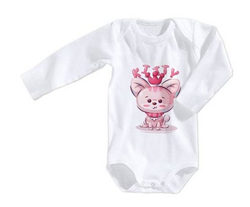 Offrez à votre bébé un body personnalisé, doux et pratique. Confectionné en 100% coton européen, il garantit confort et qualité. Son motif délicat d’animaux rigolos Kitty apporte une touche d’originalité tout en restant doux et tendre. Facile à enfiler grâce à l’encolure américaine et la fermeture boutons pression, ce body est disponible en manches courtes et longues, parfait pour un cadeau unique et personnalisé.