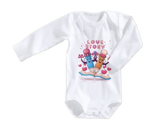 Body personnalisé Animaux rigolos Love story avec impression en couleur, en coton à encolure américaine croisée et manches courtes ou longues. Ils se ferment par boutons pression dans l’entrejambe pour faciliter le change. Les bodies constituent l’essentiel du premier dressing de bébé, surtout personnalisés. Faites le plein de confort et de douceur pour votre bébé en craquant pour ce magnifique body à manches longues ou courtes !, 100% coton.