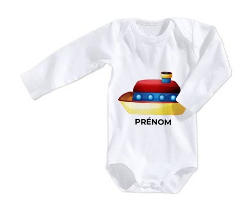 Body personnalisé Jouet toys Bateau design-1 avec prénom avec impression en couleur de fabrication européenne et composés à 100 % du coton le plus doux, il est également conçu pour être aussi pratique que joli.