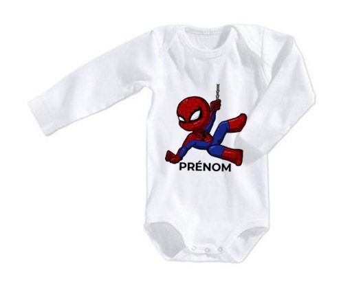 Body personnalisé Spiderman kids design-1 avec prénom avec impression en couleur de fabrication européenne et composés à 100 % du coton le plus doux, il est également conçu pour être aussi pratique que joli.