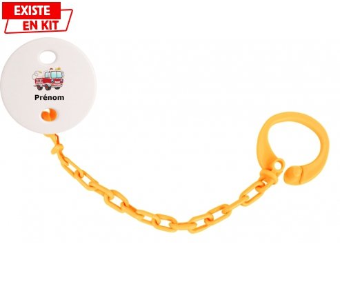 Attache-sucette personnalisé Camion pompier + prénom avec personnalisation design en couleur. Disponible en plusieurs coloris et plastique facile à laver. Pratique : permet une fixation facile de la sucette de bébé à son doudou et à ses vêtements en un seul clip. Hygiénique : empêche la sucette de tomber par terre et permet ainsi à bébé d'avoir une sucette propre toute la journée Visible : facile à repérer grâce aux motifs colorés.