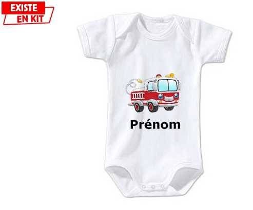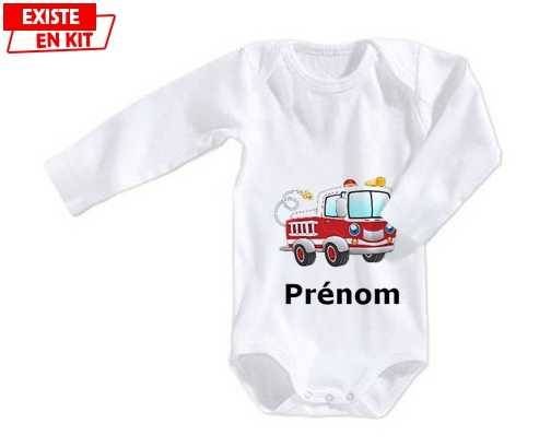 Body personnalisé Camion pompier + prénom avec impression en couleur de fabrication européenne et composés à 100 % du coton le plus doux, il est également conçu pour être aussi pratique que joli.