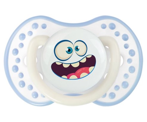 Sucette personnalisée pour bébé design : Cartoon monstre visage design-1 Sucette LOVI Dynamic en silicone de la marque Lovi Dynamic avec impression en couleur.un cadeau idéal pour vos bébés. Nos sucettes sont conçues avec l'aide de pédiatres et de dentistes pour respecter la physiologie de bébé et répondre à son réflexe naturel de succion.