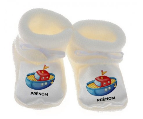 Chausson bébé Jouet toys bateau design-4 avec prénom
