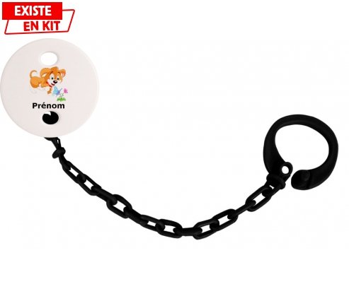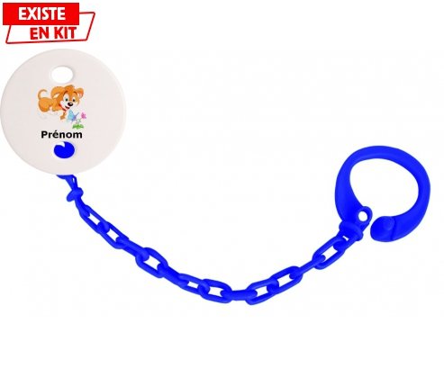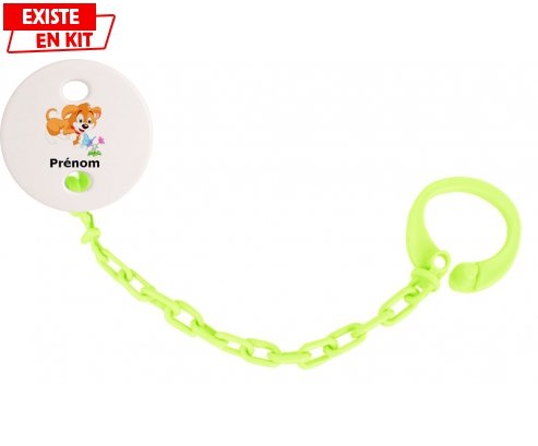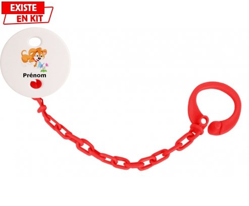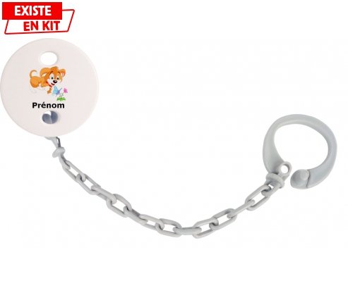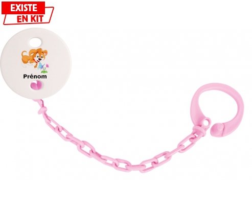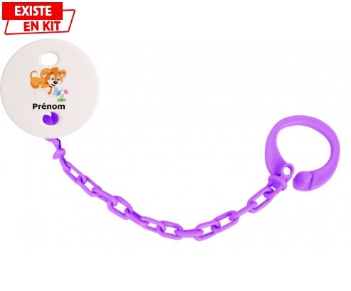 Offrez à bébé un accessoire unique et rassurant grâce à cette attache-sucette personnalisée. Son design adorable au motif chien, associé au prénom de votre choix,