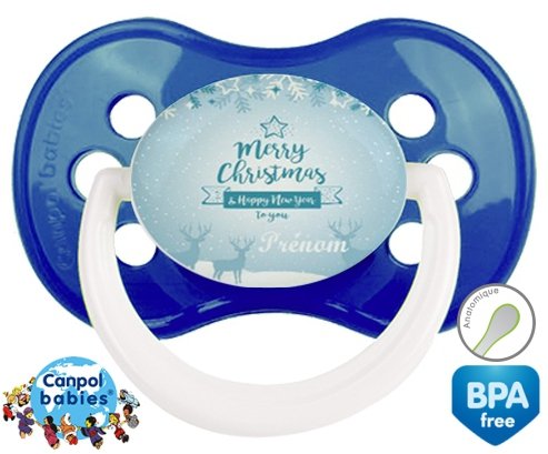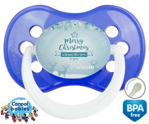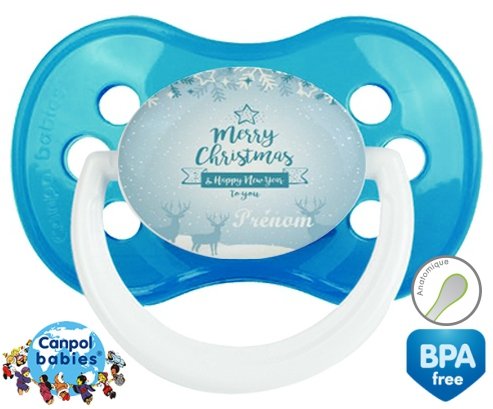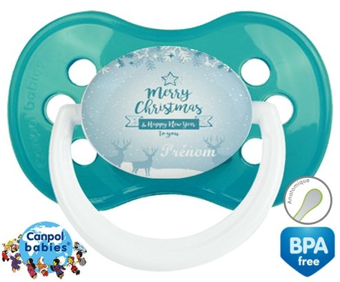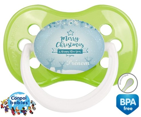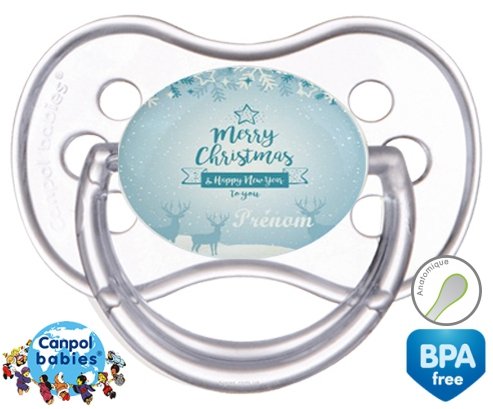 Sucette personnalisée pour bébé Christmas rennes + prénom à embout Anatomique en silicone de la marque Canpol Babies avec impression en en Couleurs de la collection Prénom personnalisé.La silicone se reconnaît par sa couleur transparente. C'est une matière souple, douce, sans goût ni odeur et offre à bébé une succion plus facile grâce à sa souplesse.