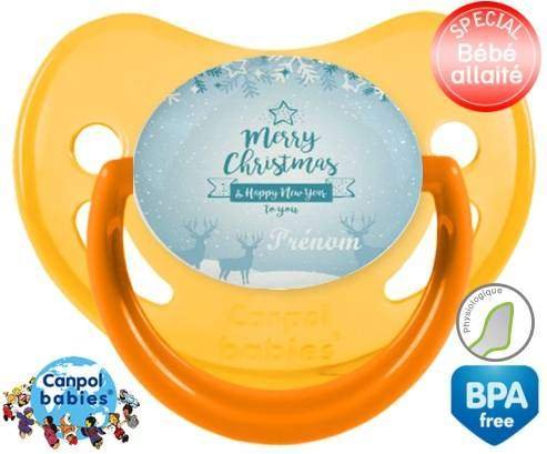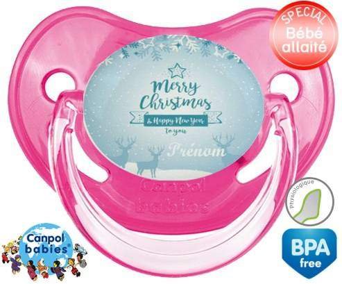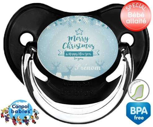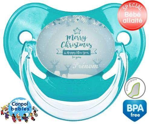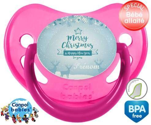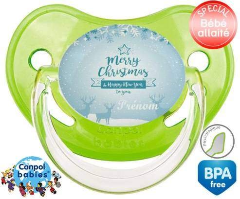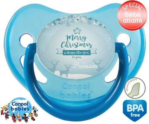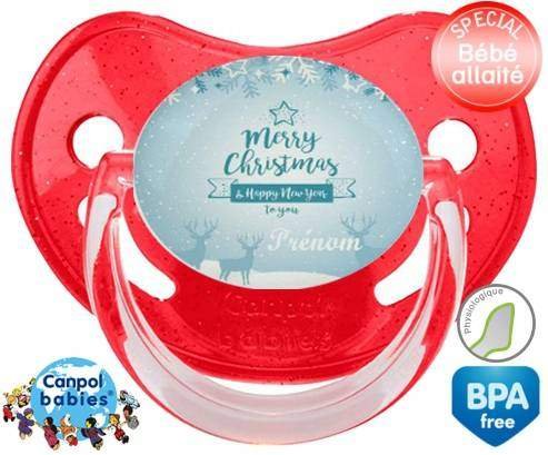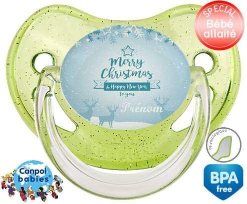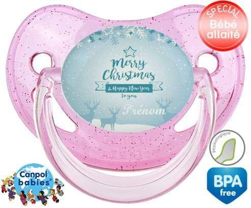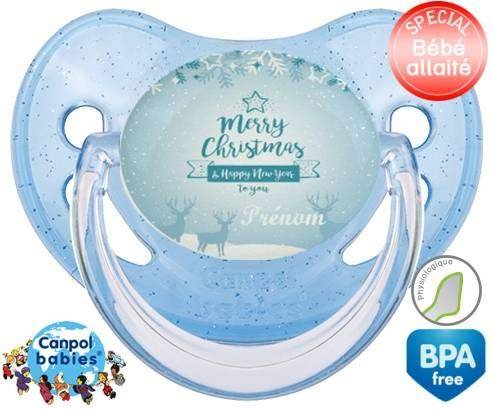 Sucette personnalisée pour bébé Christmas rennes + prénom à embout Physiologique en silicone de la marque Canpol Babies avec impression en en Couleurs de la collection Prénom personnalisé.La silicone se reconnaît par sa couleur transparente. C'est une matière souple, douce, sans goût ni odeur et offre à bébé une succion plus facile grâce à sa souplesse.