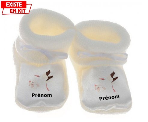 Cigogne (fille) + prénom : Chausson bébé - by ,1 janvier 2010