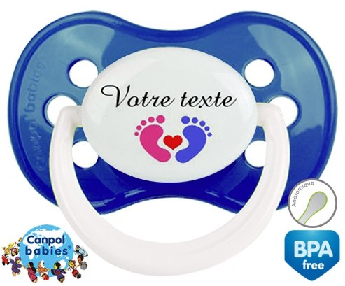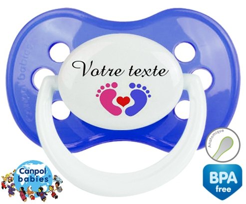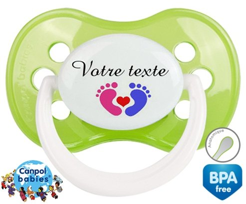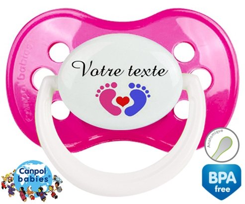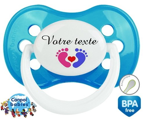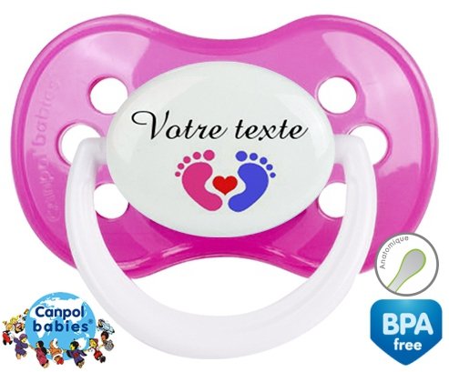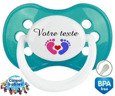 Tetine personnalisee avec le prénom pour bébé Coeur mixte + prénom : Embout Anatomique en silicone de la marque Canpol Babies avec impression en couleur.