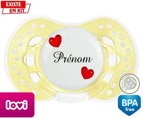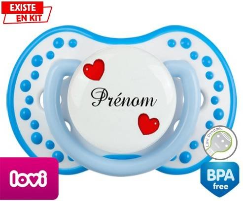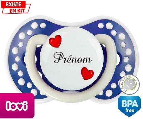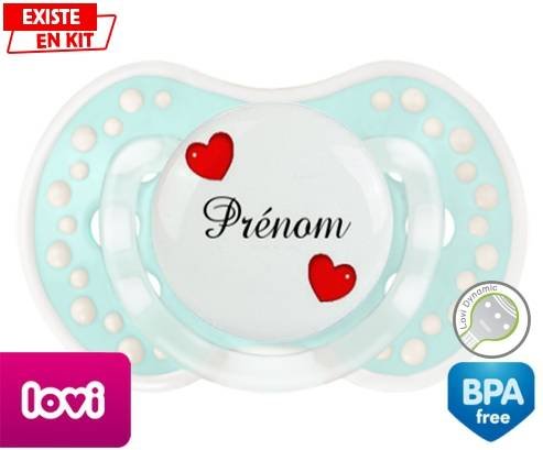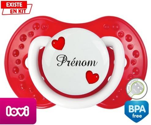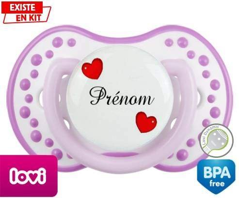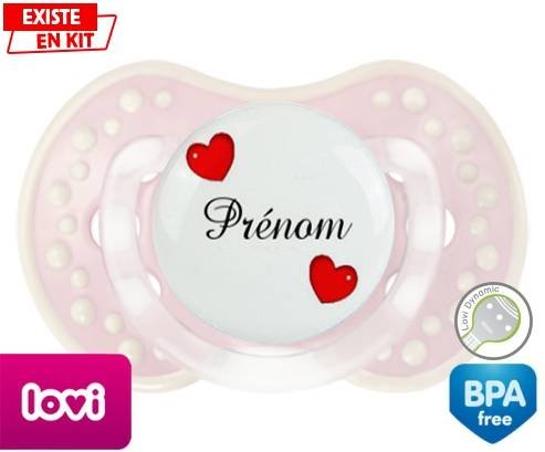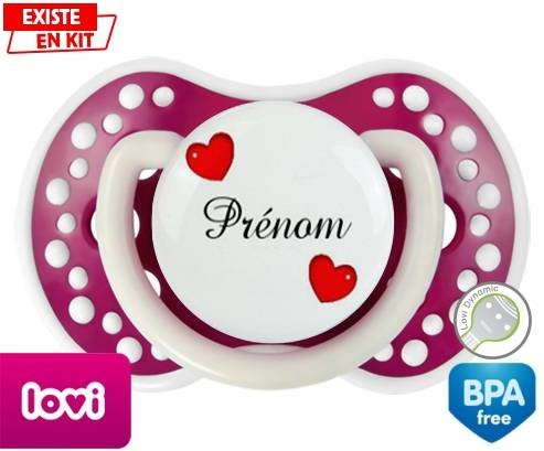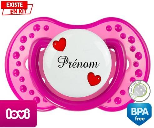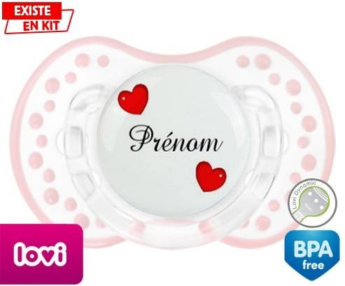 Sucette personnalisée pour bébé Cœurs Style2 + prénom à embout LOVI Dynamic en silicone de la marque Lovi Dynamic avec impression en en Couleurs de la collection Prénom personnalisé.La silicone se reconnaît par sa couleur transparente. C'est une matière souple, douce, sans goût ni odeur et offre à bébé une succion plus facile grâce à sa souplesse.
