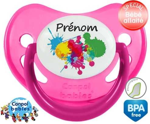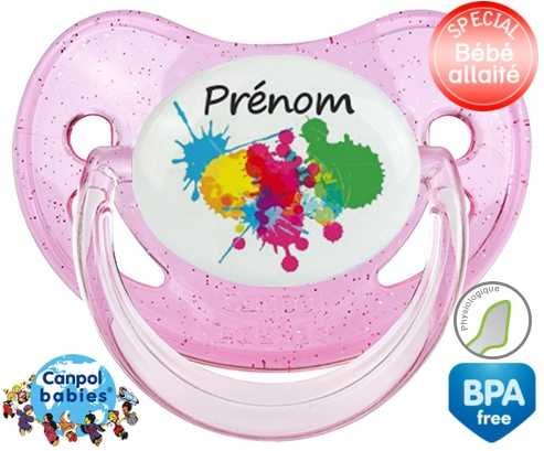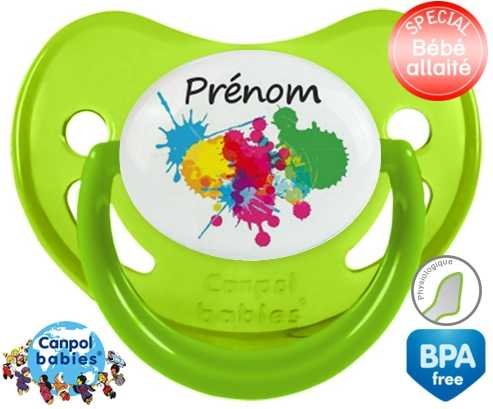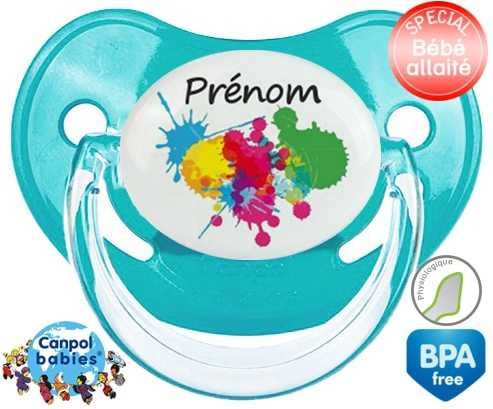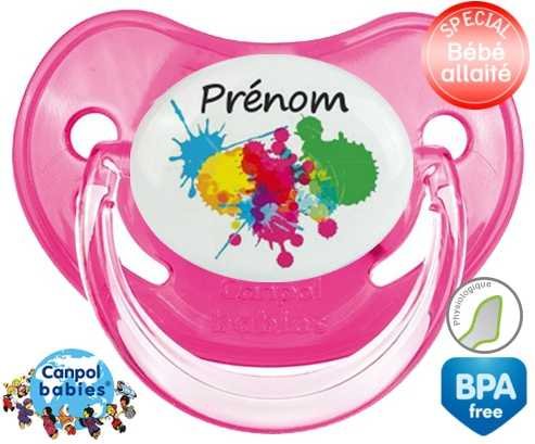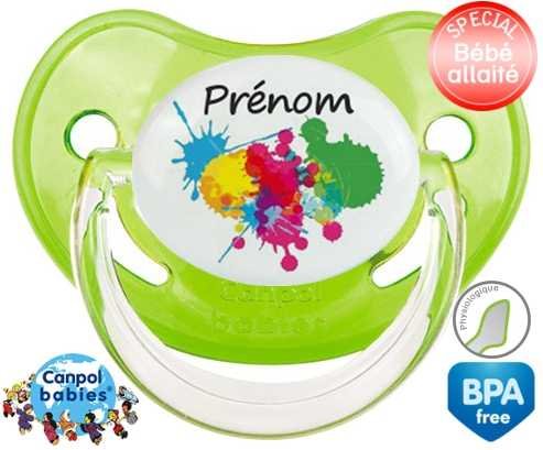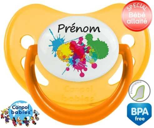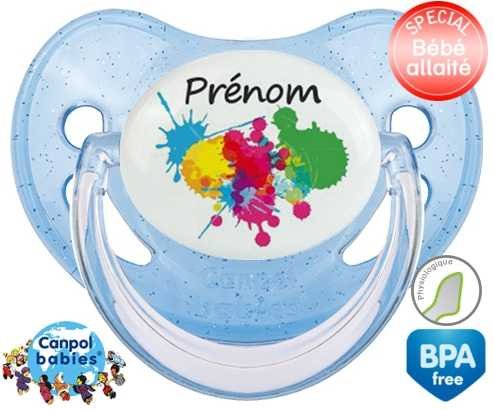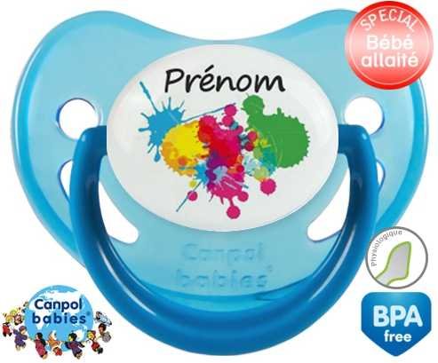 Sucette personnalisée pour bébé Couleur + prénom à embout Physiologique en silicone de la marque Canpol Babies avec impression en en Couleurs de la collection Prénom personnalisé.La silicone se reconnaît par sa couleur transparente. C'est une matière souple, douce, sans goût ni odeur et offre à bébé une succion plus facile grâce à sa souplesse.