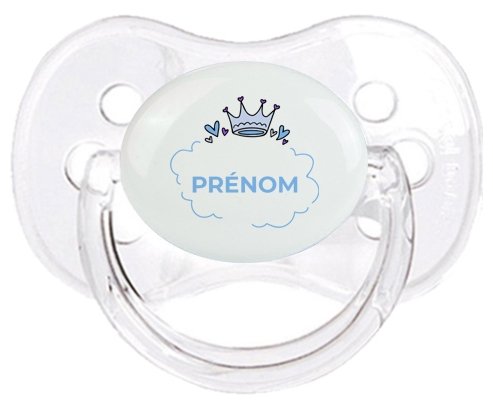 Offrez à votre bébé une tétine personnalisée unique, alliant douceur et originalité. Son embout en forme de cerise, confortable et ergonomique, assure une parfaite prise en bouche. Le design délicat de la couronne bleue avec un joli cœur apporte une touche tendre et raffinée, sublimée par l’impression du prénom. Une attention toute spéciale pour un cadeau de naissance inoubliable.