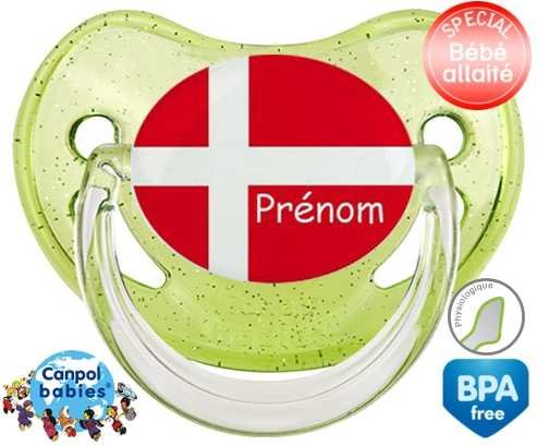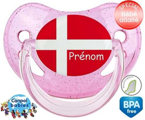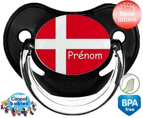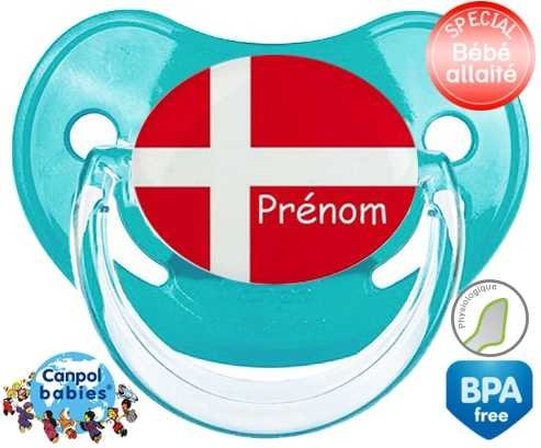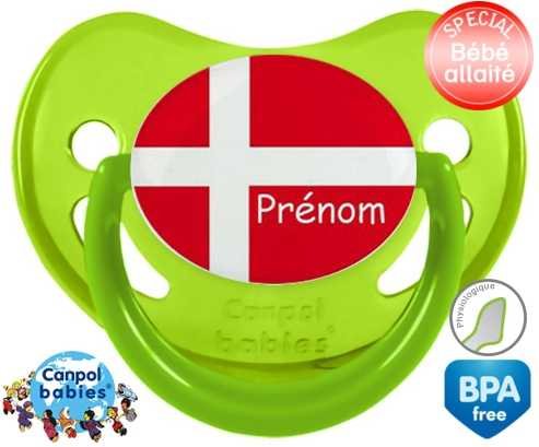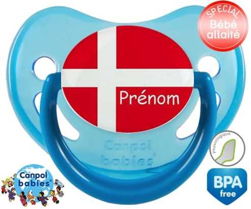 Tetine personnalisee avec le prénom pour bébé Danemark + prénom : Embout Physiologique en silicone de la marque Canpol Babies avec impression en couleur.