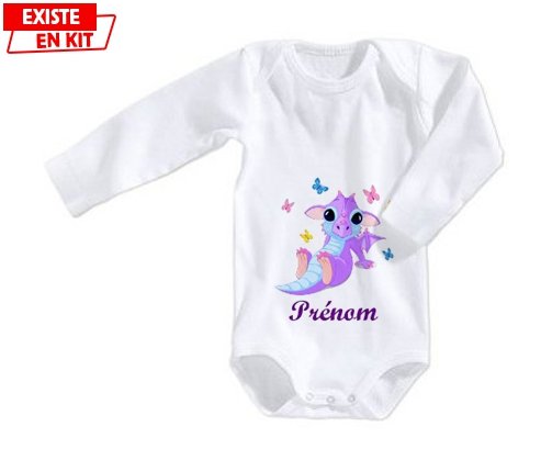 Body personnalisé Dragon papillons + prénom avec impression en couleur de fabrication européenne et composés à 100 % du coton le plus doux, il est également conçu pour être aussi pratique que joli.