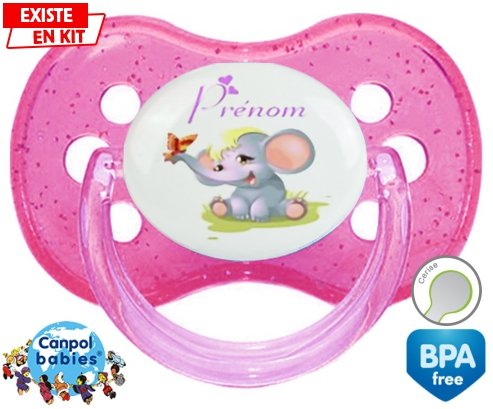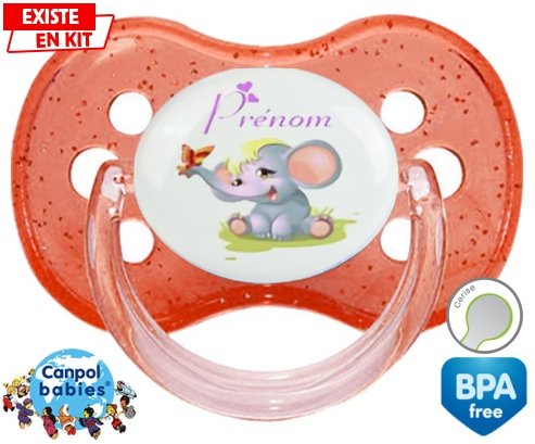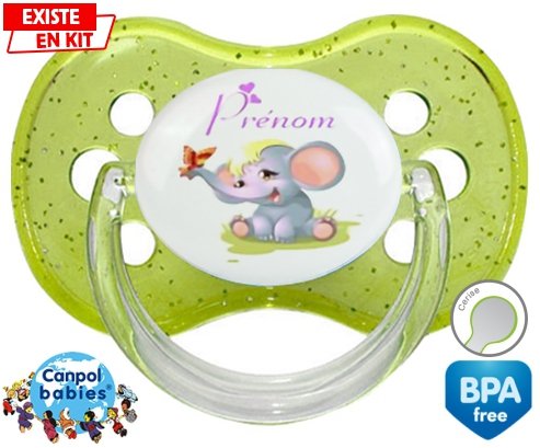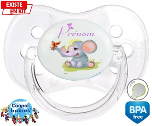 Sucette personnalisée pour bébé Eléphant style1 + prénom à embout Cerise en silicone de la marque Canpol Babies avec impression en en Couleurs de la collection Prénom personnalisé.La silicone se reconnaît par sa couleur transparente. C'est une matière souple, douce, sans goût ni odeur et offre à bébé une succion plus facile grâce à sa souplesse.