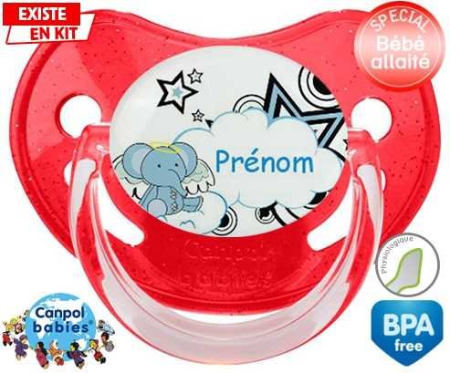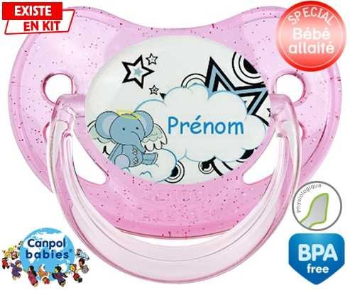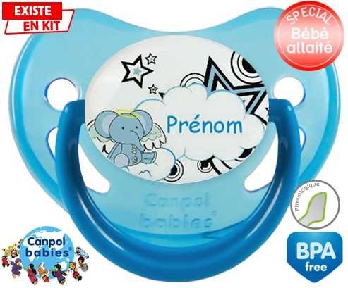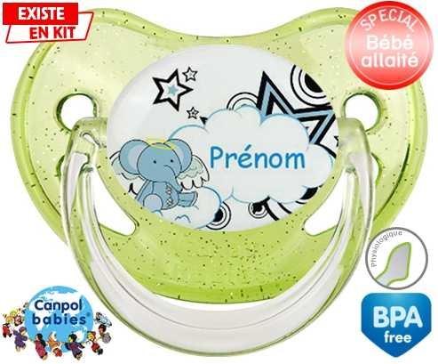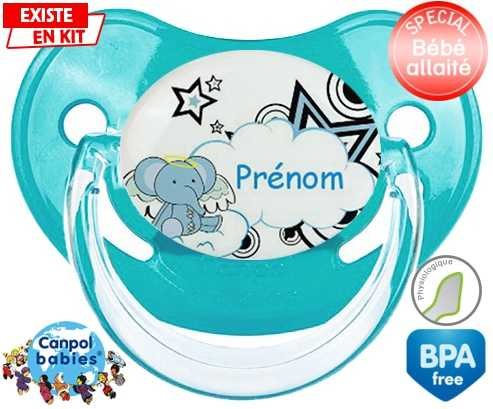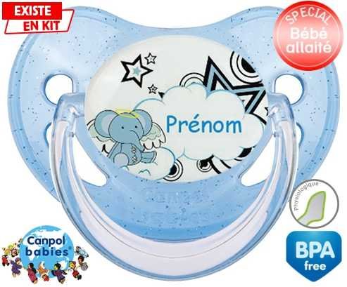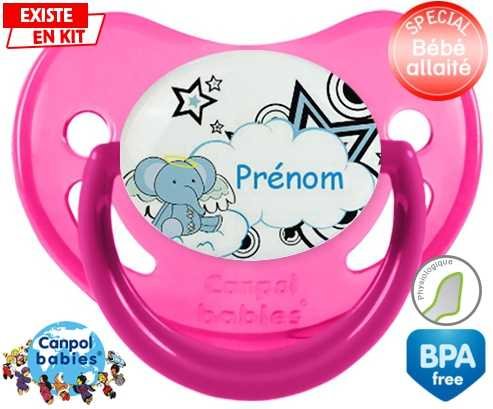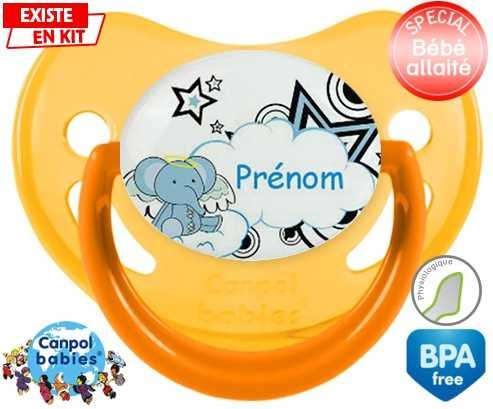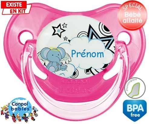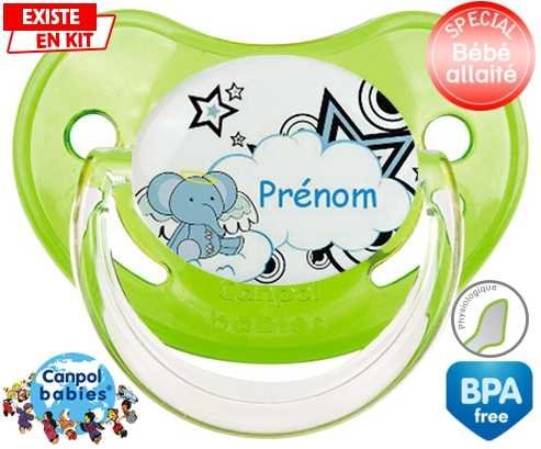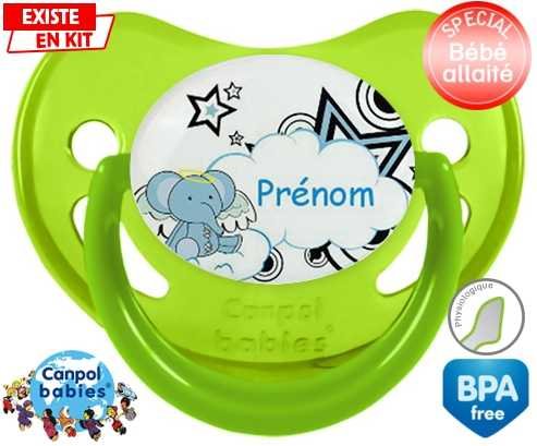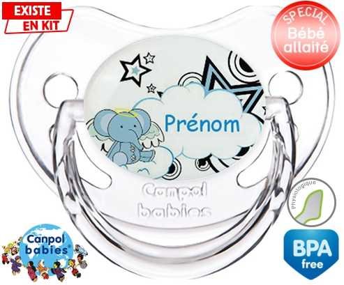 Sucette personnalisée pour bébé Eléphant style3 + prénom à embout Physiologique en silicone de la marque Canpol Babies avec impression en en Couleurs de la collection Prénom personnalisé.La silicone se reconnaît par sa couleur transparente. C'est une matière souple, douce, sans goût ni odeur et offre à bébé une succion plus facile grâce à sa souplesse.
