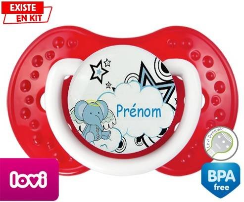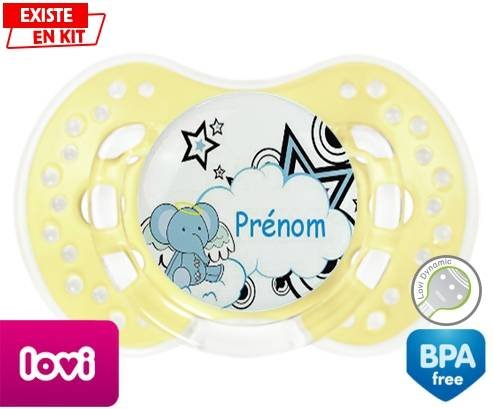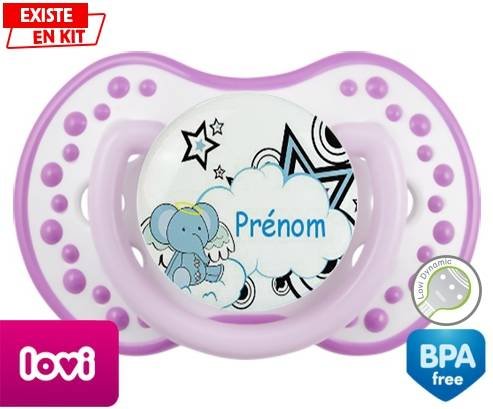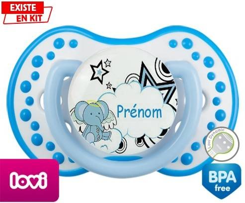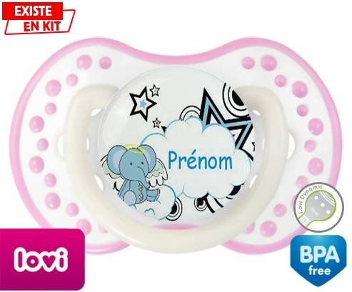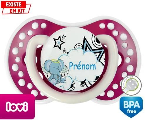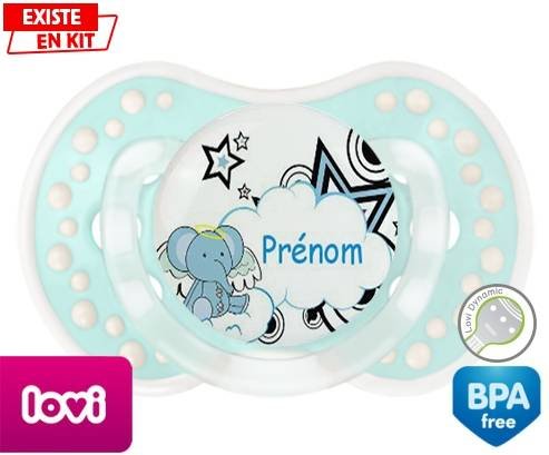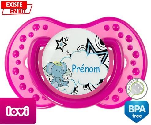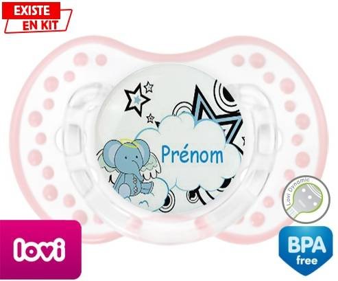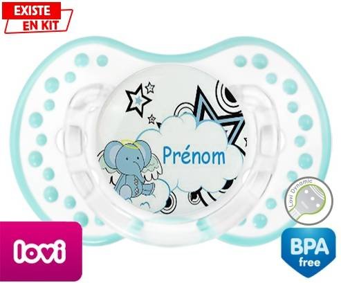 Tétine personnalisée pour bébé Eléphant style3 + prénom à embout LOVI Dynamic en silicone de la marque Lovi Dynamic avec impression en en Couleurs de la collection Prénom personnalisé.La silicone se reconnaît par sa couleur transparente. C'est une matière souple, douce, sans goût ni odeur et offre à bébé une succion plus facile grâce à sa souplesse.