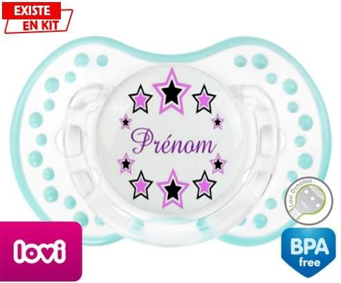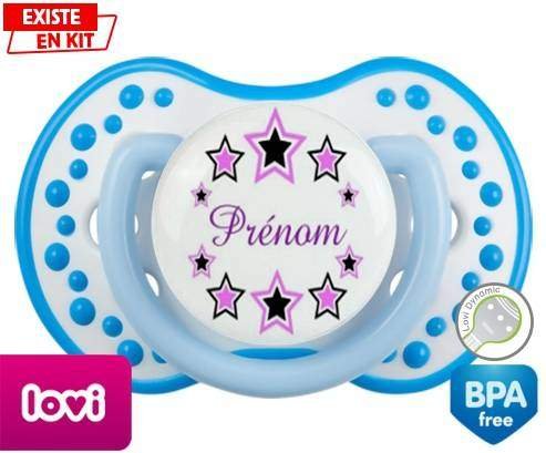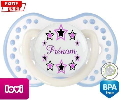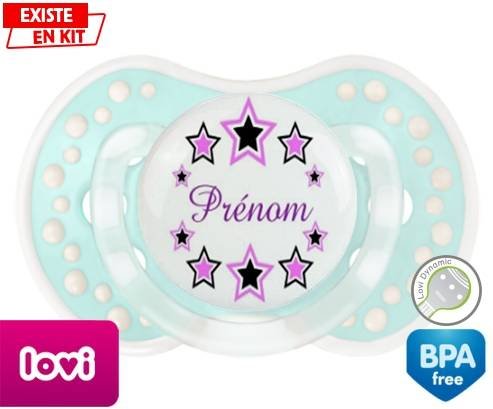 Offrez à votre bébé une tétine personnalisée unique, douce et rassurante. Cette sucette LOVI Dynamic, avec son embout en forme de boule à picots, est conçue pour imiter la sensation du mamelon maternel, idéale pour les tout-petits. Son design étoilé aux couleurs délicates, spécialement pensé pour les filles, s’accompagne du prénom de votre choix, pour un cadeau à la fois pratique et plein de tendresse.
