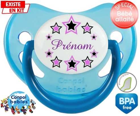 Offrez à votre bébé une tétine personnalisée douce et sécurisée avec notre modèle Étoile, spécialement pensé pour les petites filles. Son embout physiologique respecte la bouche de votre enfant, idéal pour l’allaitement au sein. Le design délicat d’étoiles imprimé en couleur apporte une touche tendre et unique, sublimée par l’impression du prénom.