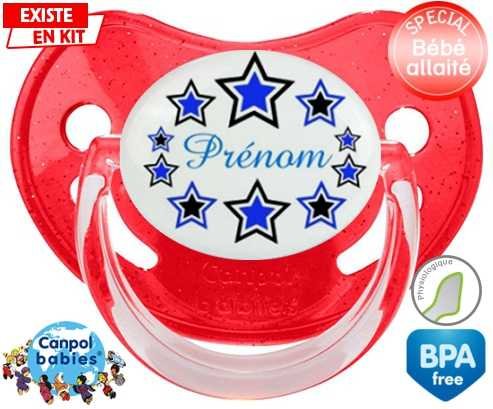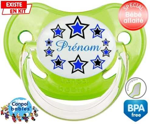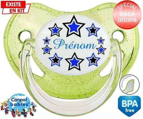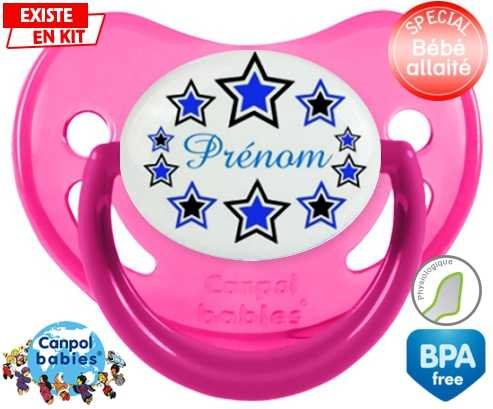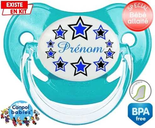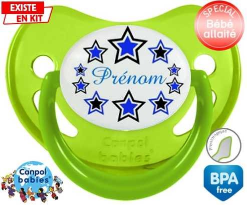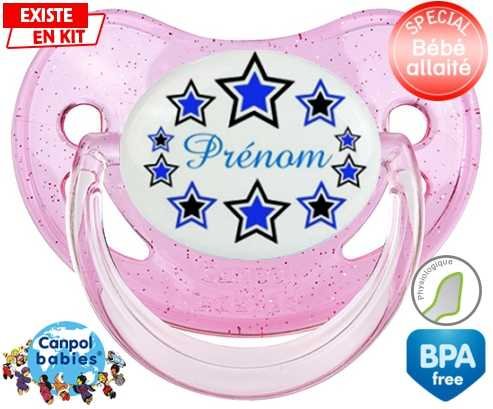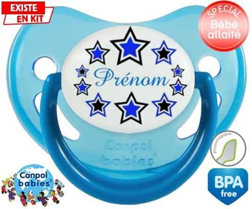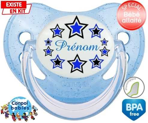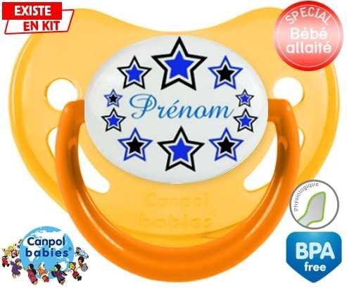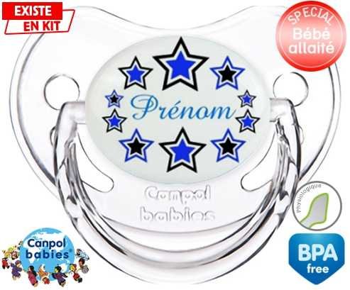 Sucette personnalisée pour bébé Étoile modèle (garçon) + prénom à embout Physiologique en silicone de la marque Canpol Babies avec impression en en Couleurs de la collection Prénom personnalisé.La silicone se reconnaît par sa couleur transparente. C'est une matière souple, douce, sans goût ni odeur et offre à bébé une succion plus facile grâce à sa souplesse.